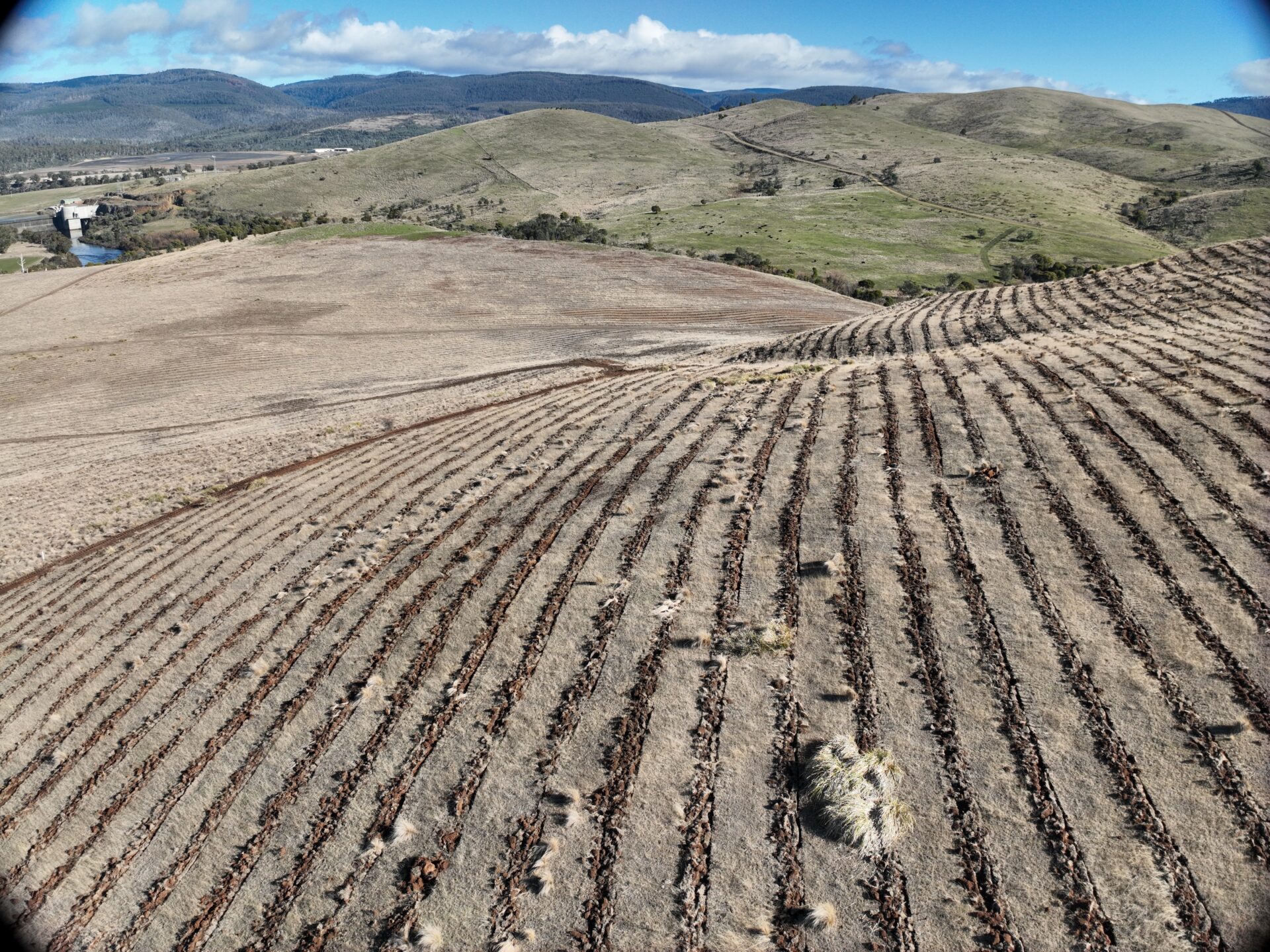 The Hurburgh site includes floodplains, steep slopes, and highly erodible soils — presenting operational challenges, particularly in areas adjacent to watercourses and near the local drinking water intake managed by TasWater. In addition to its carbon role, Hurburgh carries broader landscape and community value. The property contains patches of remnant native forest, a historic quarry, a Trig Station, and essential water infrastructure that supplies the nearby town of Ouse.